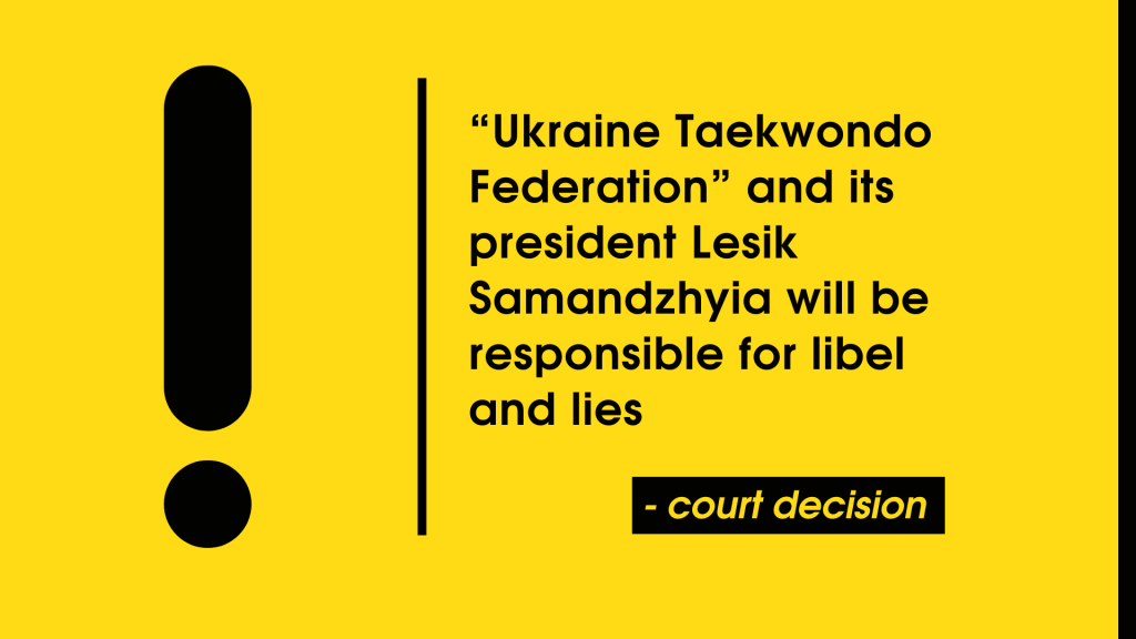“UKRAINE TAEKWONDO FEDERATION” AND ITS PRESIDENT LESIK SAMANDZHYIA WILL BE RESPONSIBLE FOR LIBEL AND LIES — COURT DECISION